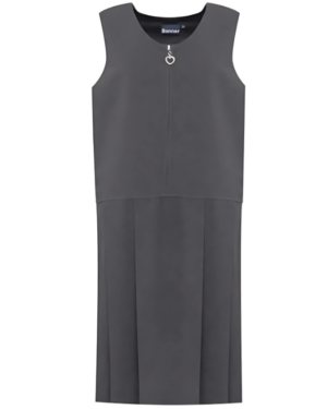 Our Lynton Pleated Pinafores are made from 100% Recycled Polyester, featuring a fully lined bodice and a novelty charm zip