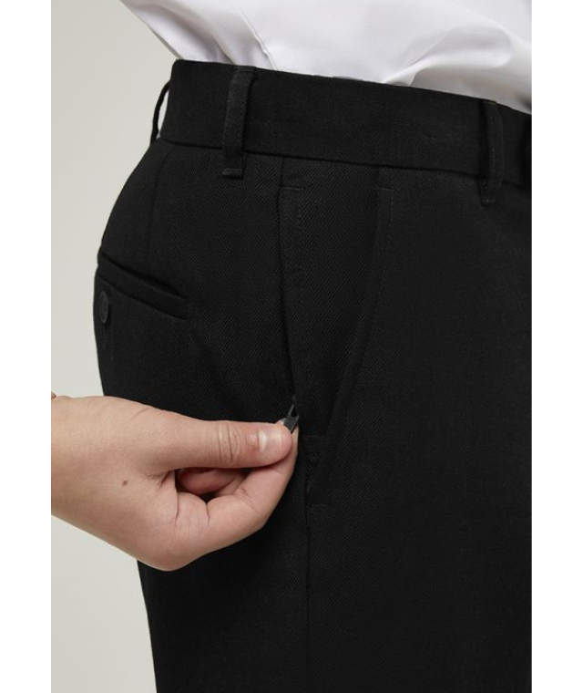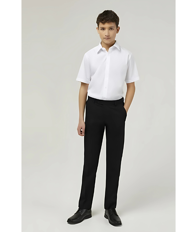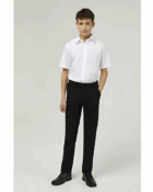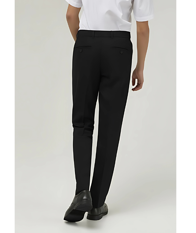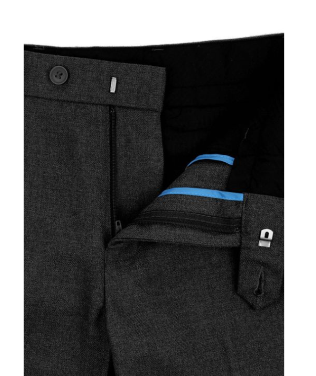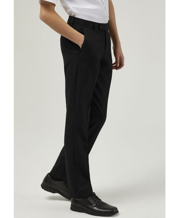 Senior boys slim leg trouser, flat front with slimmer leg, two buttoned back pockets and internal waist adjuster.