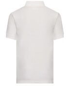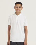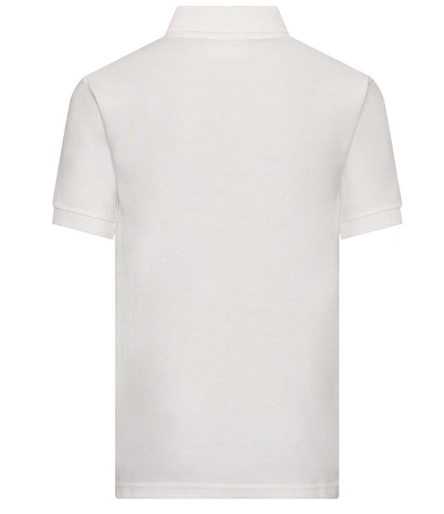 This unisex plain white polo shirt has a relaxed fit, 1x1 flat knit collar and cuffs